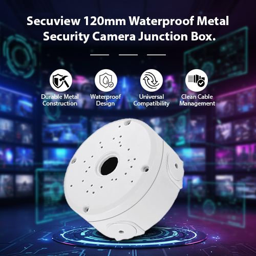 The Secuview 120mm Waterproof Metal Security Camera Junction Box offers durable protection, clean cable management, and flexible wall or ceiling installation for reliable indoor and outdoor CCTV setups.