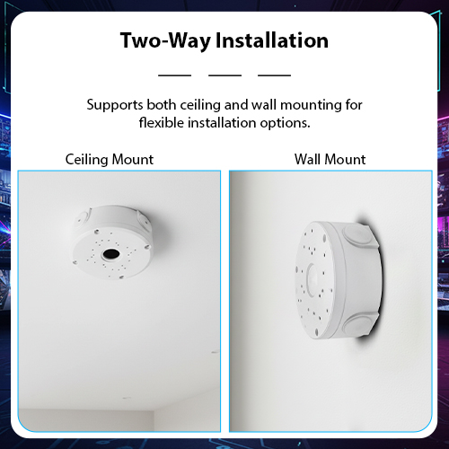 Two-Way Installation: Supports both ceiling and wall mounting for flexible installation options.