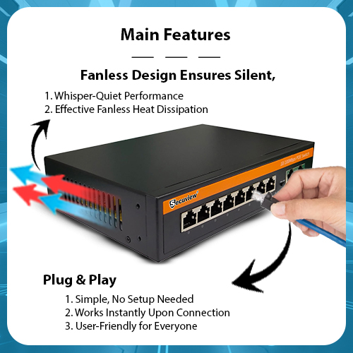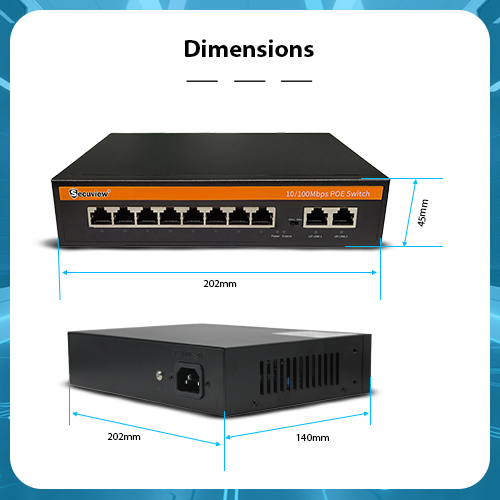 Secuview 120W 8-Port PoE Switch with 2 uplinks delivers reliable power and stable 10/100Mbps network performance for PoE devices.