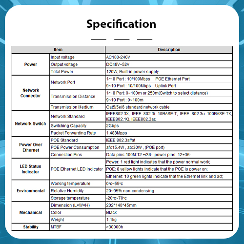 * Extended PoE transmission up to 250 meters for network expansion.