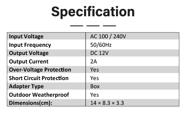 Secuview 12V 2A Waterproof AC/DC Power Adapter for CCTV Cameras | Box Type