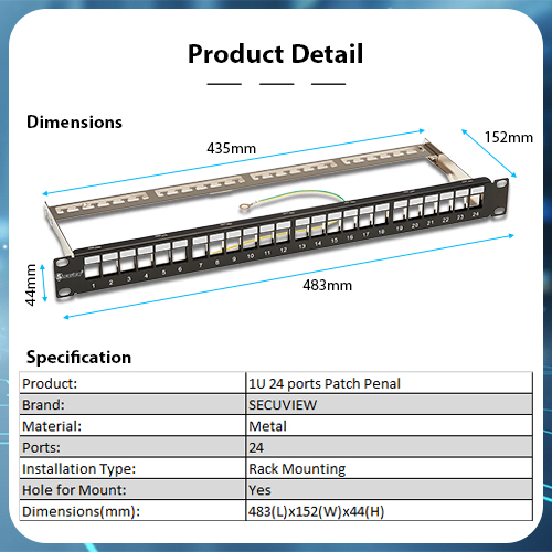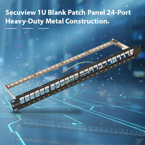 The Secuview 1U 24-Port Blank Patch Panel features heavy-duty metal construction, providing durable, secure, and organized network port management for any rack setup.