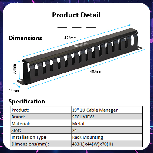 Discover the Secuview 1U Rack-Mount Cable Manager, built from durable metal with a protective cover for clean, secure, and organized cable routing in any rack system.