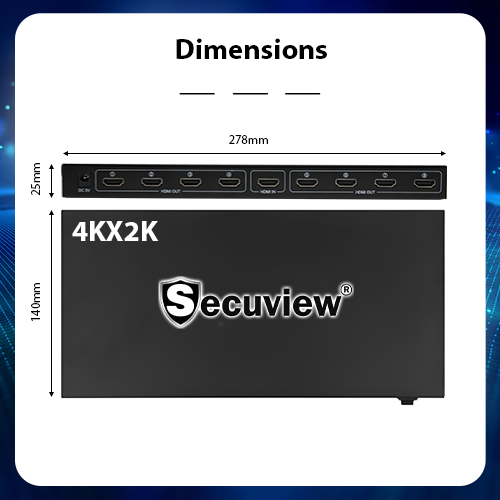 Secuview 1×8 HDMI Splitter | Distribute 4K Signal to Eight Displays Seamlessly.