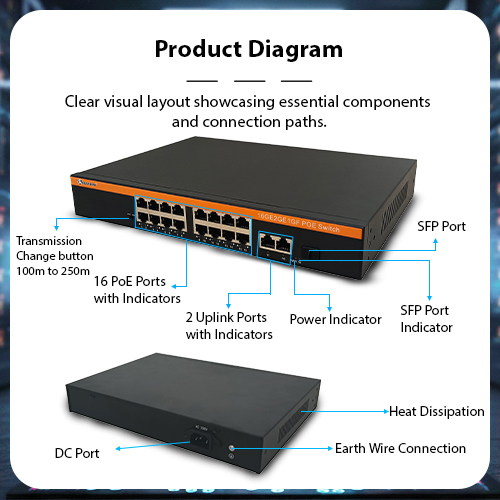 Product Diagram: Clear visual layout showcasing essential components and connection paths.
