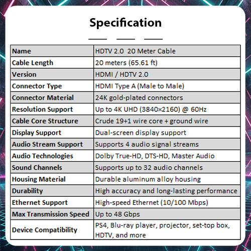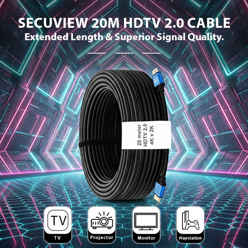 The Secuview 20M HDTV 2.0 Cable offers extended length and superior signal quality, delivering reliable 4K HD transmission and seamless connectivity for TVs, projectors, gaming consoles, and home entertainment systems.