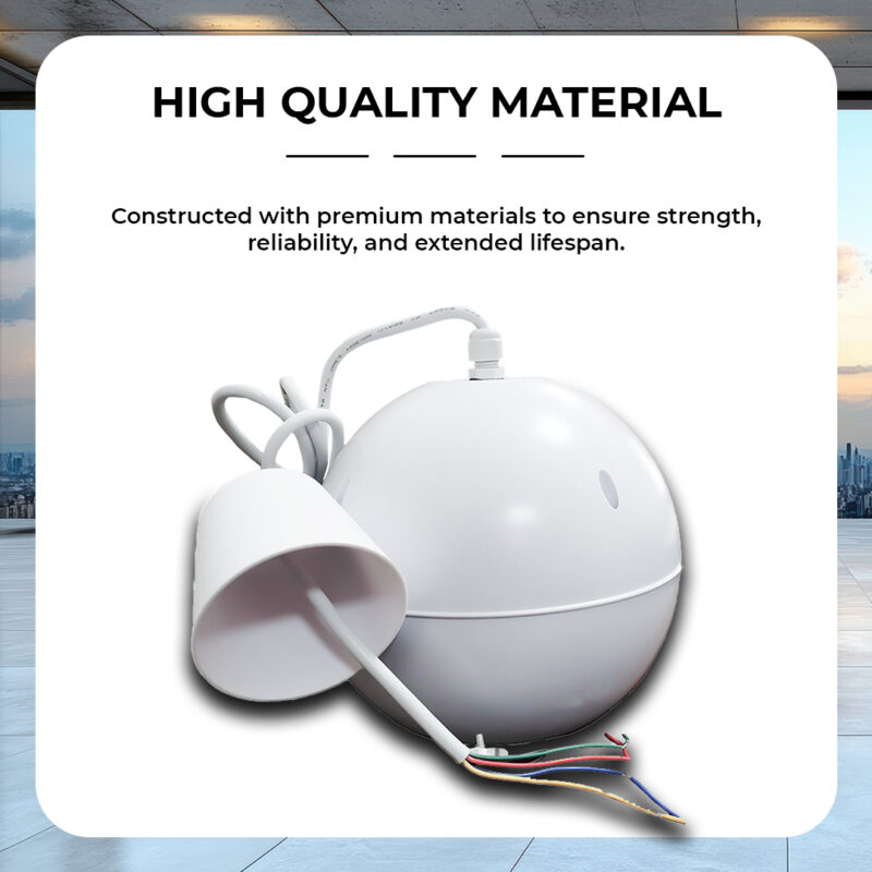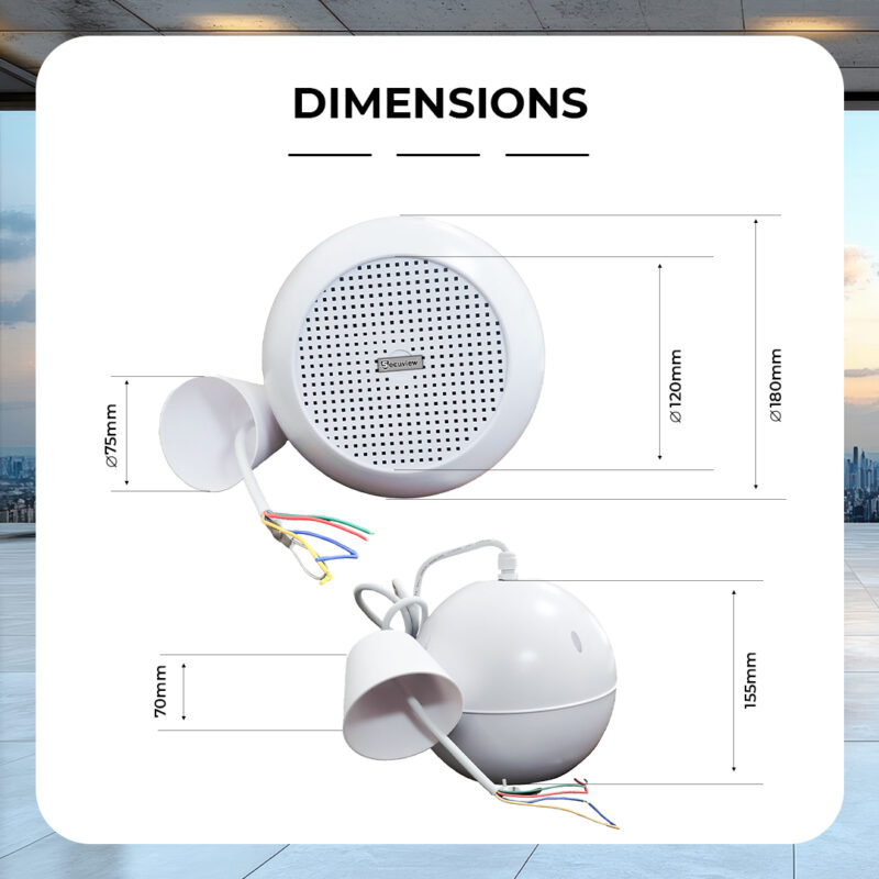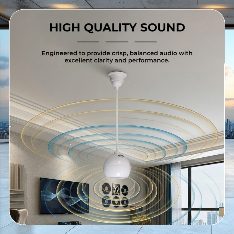 The Secuview 20W Hanging Speaker is a premium pendant-style audio solution designed for open-ceiling environments and modern architectural spaces. Combining a stylish, spherical aesthetic with high-output performance, it delivers 360-degree sound coverage and exceptional clarity.