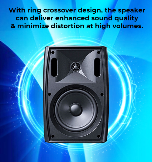 Ring Crossover: The ring crossover design allows the speaker to deliver enhanced sound quality and minimize distortion at high volumes.