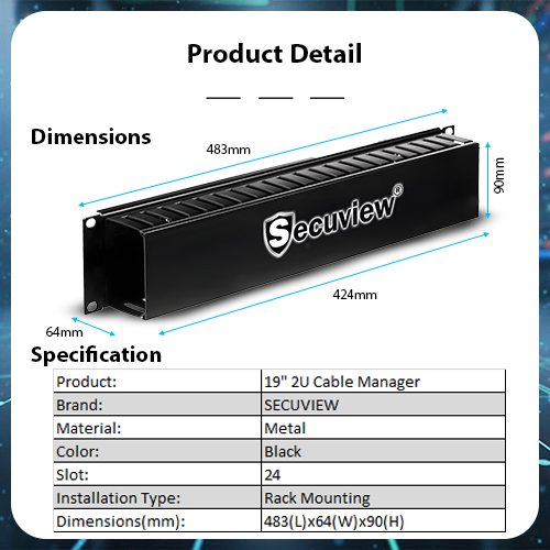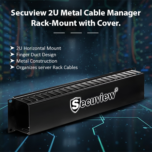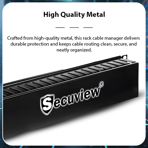 The Secuview 2U Metal Cable Manager offers strong rack-mount cable organization with a durable metal build and protective cover, ensuring clean, secure, and efficient cable routing.