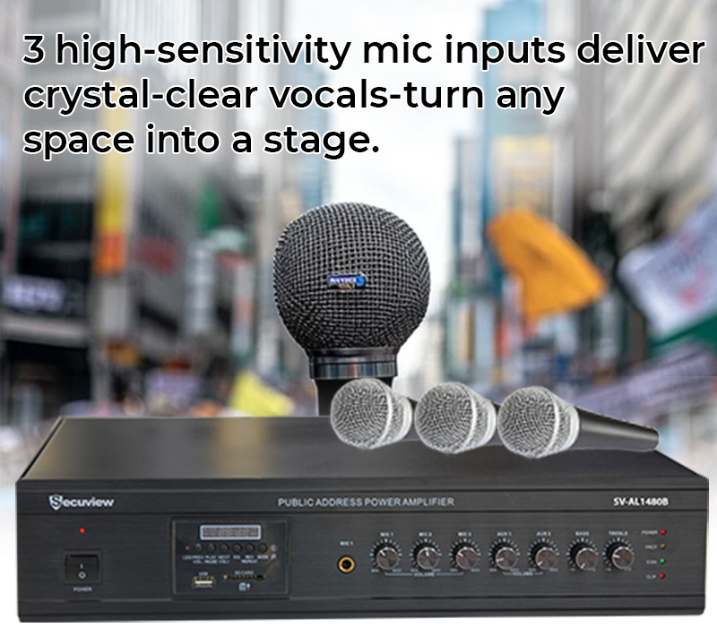 Crystal Clear Communication: Whether you’re leading a seminar, hosting a conference, energizing a crowd, or celebrating with family and community, our Public Broadcast Amplifier ensures every word is heard with perfect clarity. Featuring three high-sensitivity microphones, it delivers powerful, distortion-free sound, eliminating dead zones and keeping your audience fully engaged.