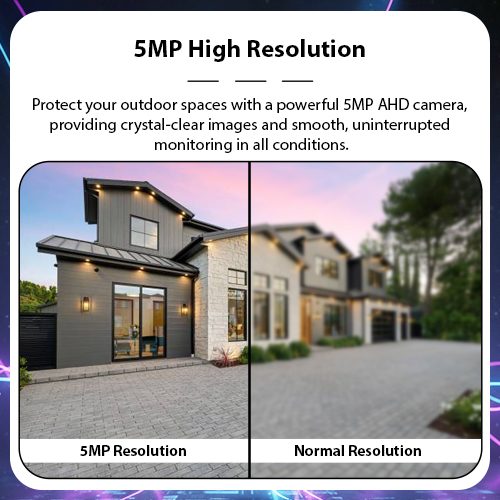 5MP High Resolution: Protect your outdoor spaces with a powerful 5MP AHD camera, providing crystal-clear images and smooth, uninterrupted monitoring in all conditions.