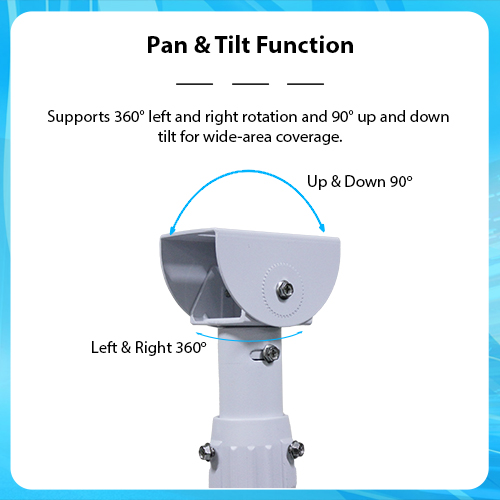 Pan & Tilt Function: Supports 360° left and right rotation and 90° up and down tilt for wide-area coverage.