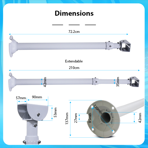 Secuview 60 – 120cm Adjustable CCTV Mount Bracket with Pan & Tilt Function.