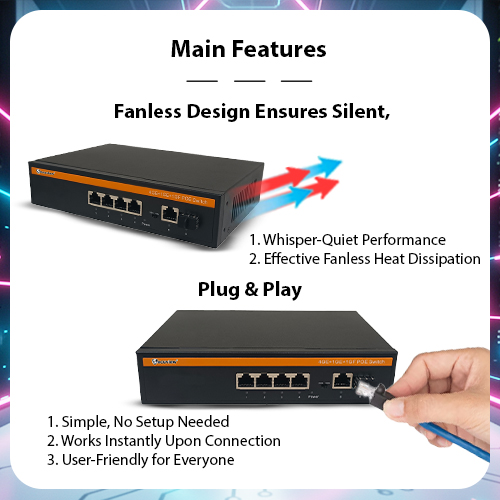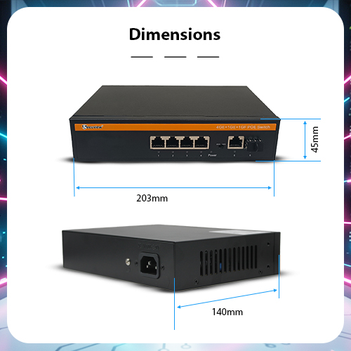 Secuview 65WPoE switch |4 PoE + 1 Uplink + 1SFP, Stable Gigabit Performance.