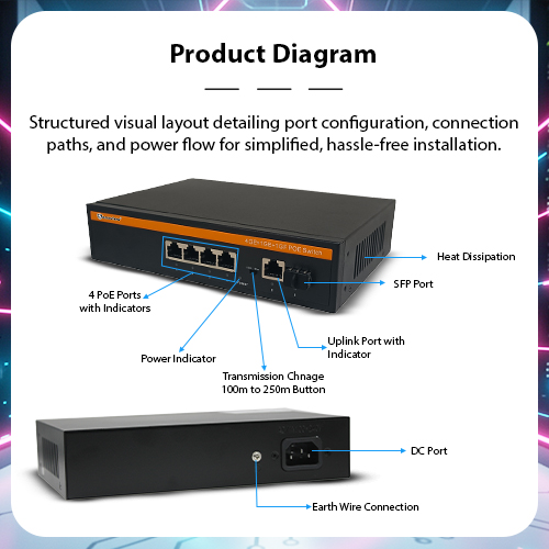Structured visual layout detailing port configuration, connection paths, and power flow for simplified, hassle-free installation.