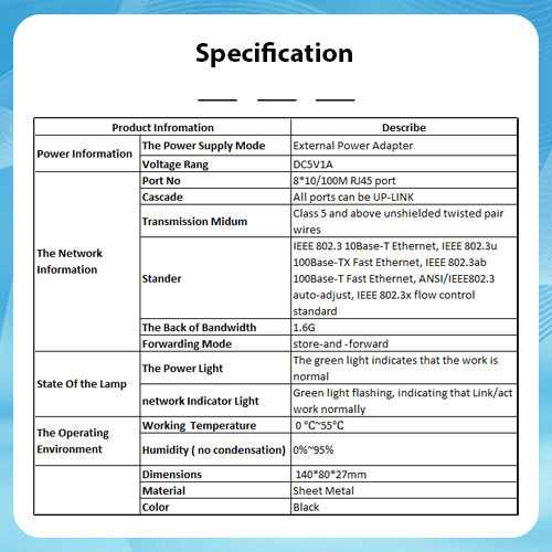 > 8× 10/100Mbps RJ45 ports with Auto-MDI/MDIX