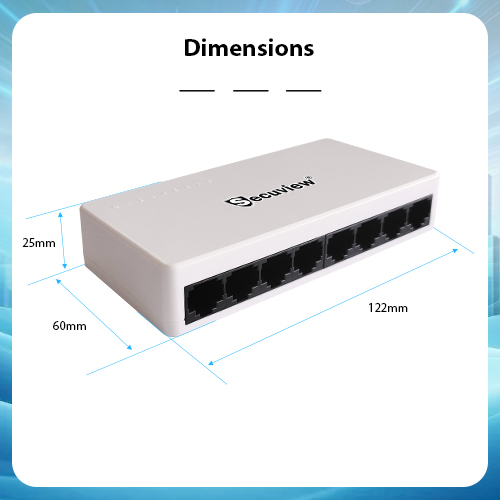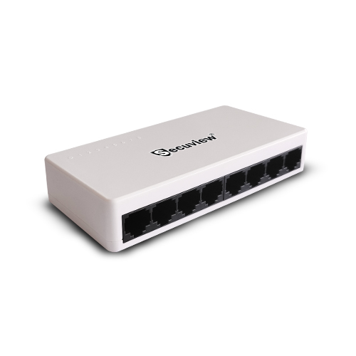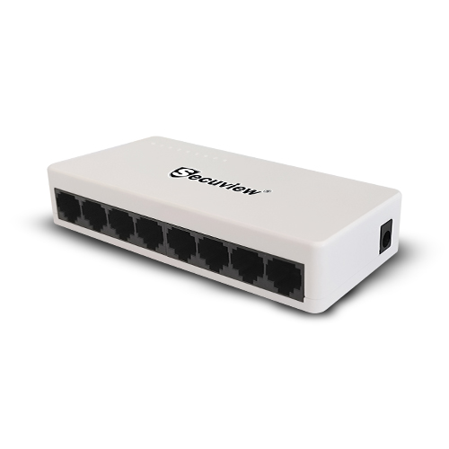 Secuview 8-Port Plastic Ethernet Switch 100Mbps connectivity.