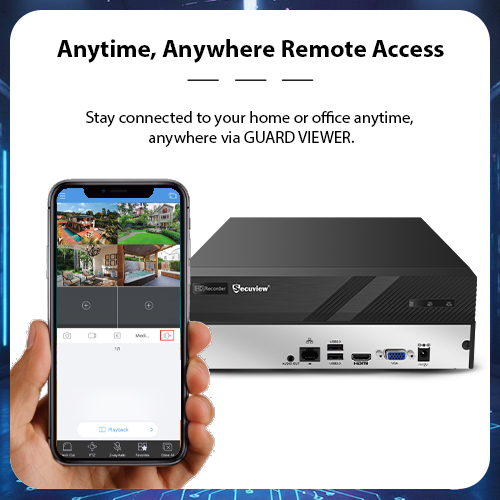 Anytime, Anywhere Remote Access: Stay connected to your home or office anytime, anywhere via GUARD VIEWER.