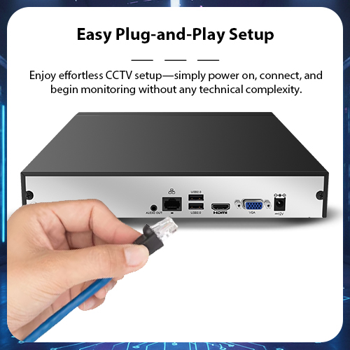 Easy Plug-and-play Setup: Enjoy effortless CCTV setup simply power on, connect, and begin monitoring without any technical complexity.
