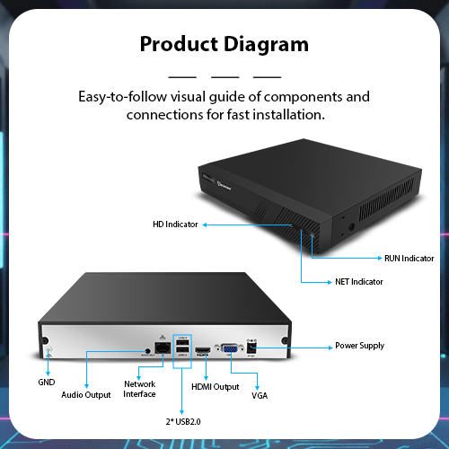Product Diagram: Easy-to-follow visual guide of components and connections for fast installation.