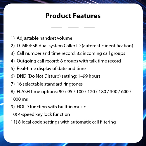 2) DTMF/FSK dual system Caller ID (automatic identification)