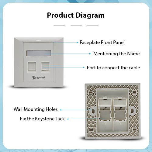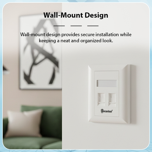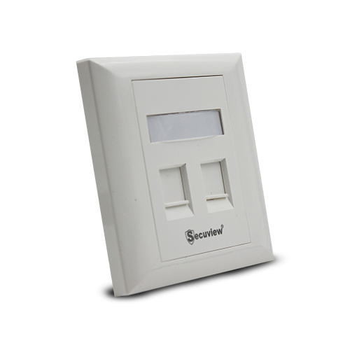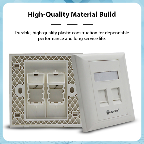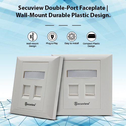 Secuview Double-Port Faceplate features durable plastic construction with a wall-mount design, ensuring secure, reliable, and neat installation for home or office use.