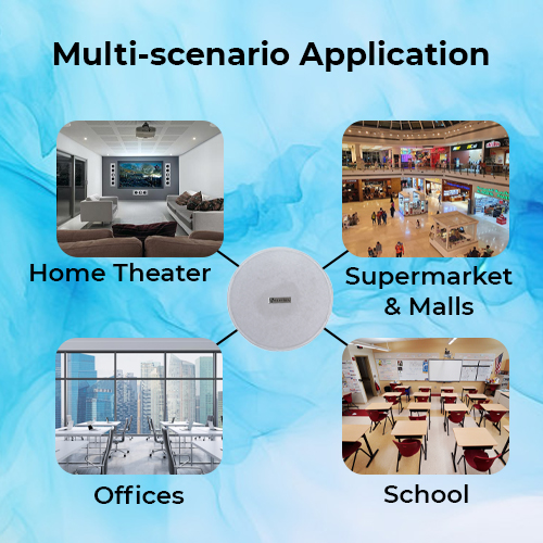 This ceiling speaker gives clear sound in big or noisy areas, so everyone can hear announcements, music, or alerts easily.