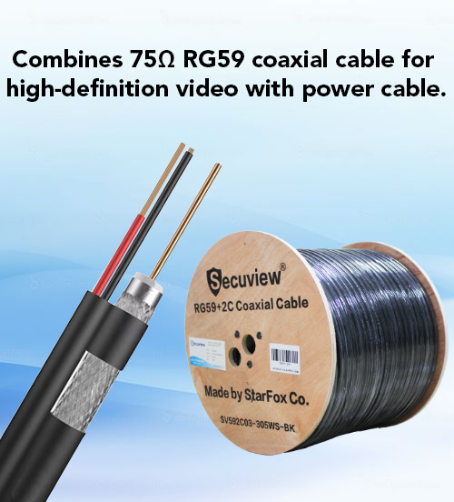 Dual Functionality: Combines 75Ω RG59 coaxial cable for high-definition video with power conductors—eliminating separate wiring hassles.