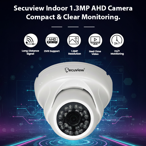 Secuview 1.3MP Indoor AHD Camera offers a compact design, clear imaging, and dependable monitoring for secure indoor surveillance.
