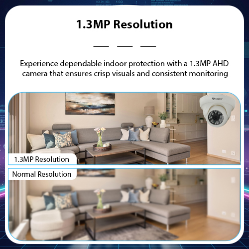 1.3MP Resolution: Experience dependable indoor protection with a 1.3MP AHD camera that ensures crisp visuals and consistent monitoring