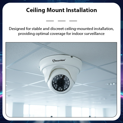 Ceiling Mount installation: Designed for stable and discreet ceiling-mounted installation, providing optimal coverage for indoor surveillance.