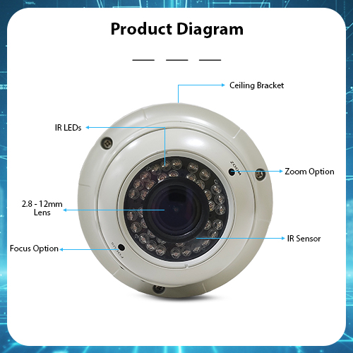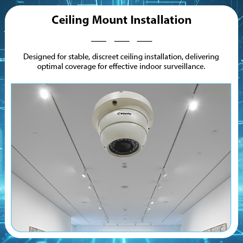 Ceiling Mount Installation: Designed for stable, discreet ceiling installation, delivering optimal coverage for effective indoor surveillance.