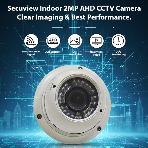 Enhance your indoor security with the Secuview 2MP AHD CCTV Camera, offering clear imaging, stable performance, and reliable monitoring for homes and businesses.