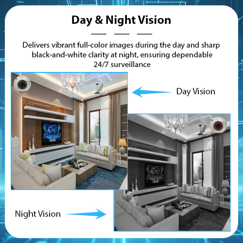 Day & Night Vision: Delivers vibrant full-color images during the day and sharp black-and-white clarity at night, ensuring dependable24/7 surveillance