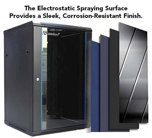 The electrostatic spraying surface treatment provides a sleek, corrosion-resistant finish, combining functionality with style. Perfect for data centers and IT environments.