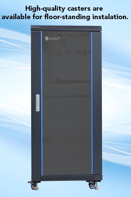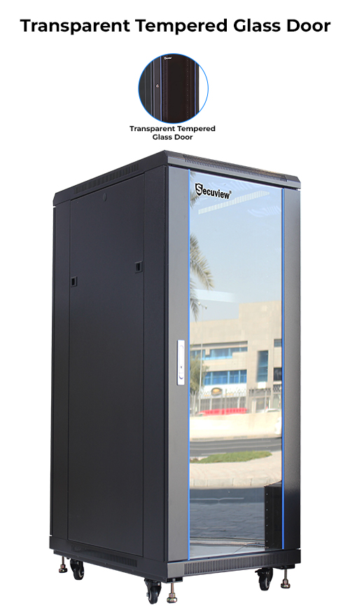 Featuring tempered transparent glass doors, the cabinet provides crystal-clear visibility for monitoring your equipment without compromising security. At the same time, with high-strength tempered glass, the cabinet will resist scratches, heat, and impact, ensuring long-lasting performance.