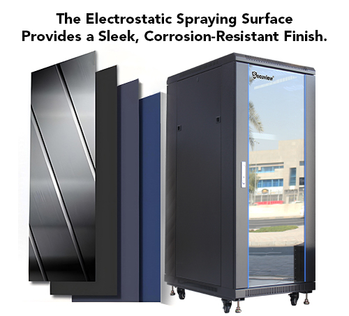 The electrostatic spraying surface treatment provides a sleek, corrosion-resistant finish, combining functionality with style. Perfect for data centers and IT environments.