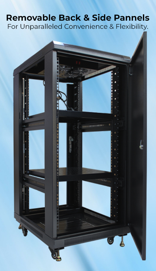 It has removable side and back panels for unparalleled convenience and flexibility. These panels provide easy access to internal components, streamlining maintenance and system upgrades.