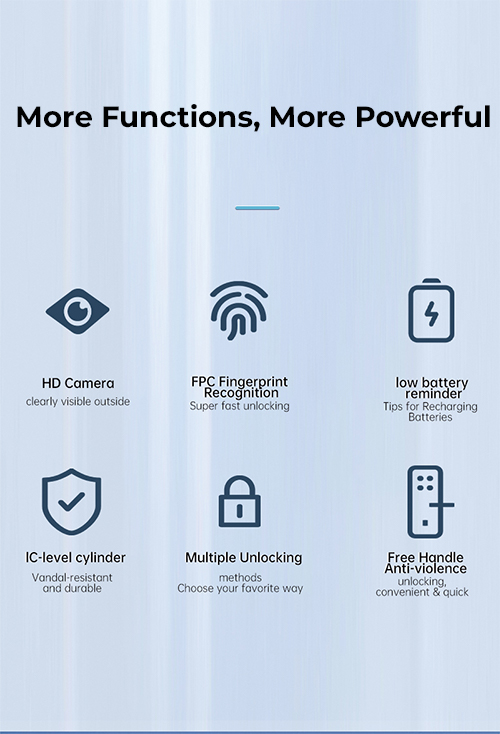 6-8 months of long-lasting battery life to meet your needs: Don’t panic when there is no power, the door can still be opened 50-100 times after the battery reminder.