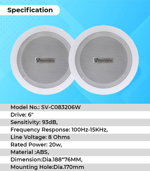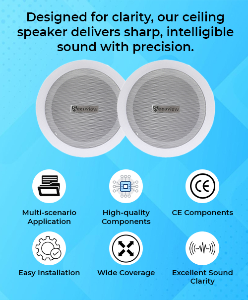 Secuview 20W Bluetooth Ceiling Speakers Built-in Design for Clear Sound.