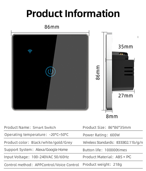 - Compatibility: Our smart switch is compatible with the Tuya smart home ecosystem.