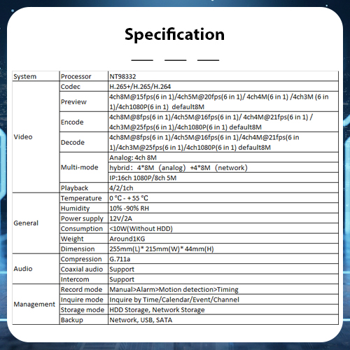 > Support XVI, AHD, TVI, CVI, CVBS, IP video input;