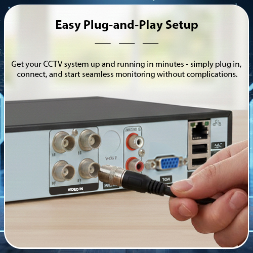 Easy Plug-and-Play Setup: Get your CCTV system up and running in minutes – simply plug in connect, and start seamless monitoring without complications.