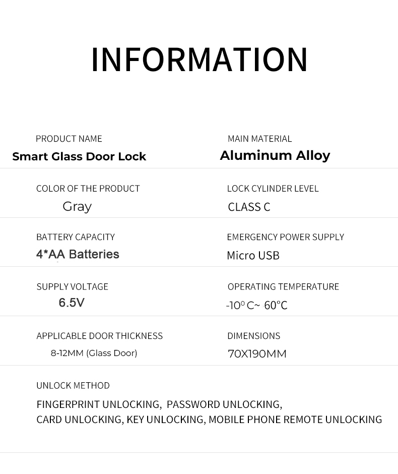 Unlock Methods: Mobile App, password, fingerprint, card, key and Temporary Password.