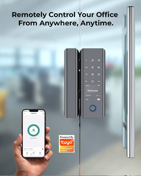Upgrade your office with our latest technology smart glass door lock, designed for modern offices. This lock ensures your business is not only secure but also stylish.