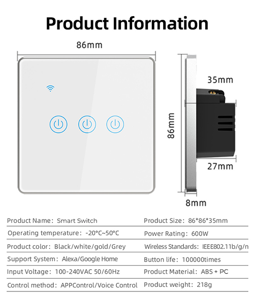 - Compatibility: Our smart switch is compatible with the Tuya smart home ecosystem.