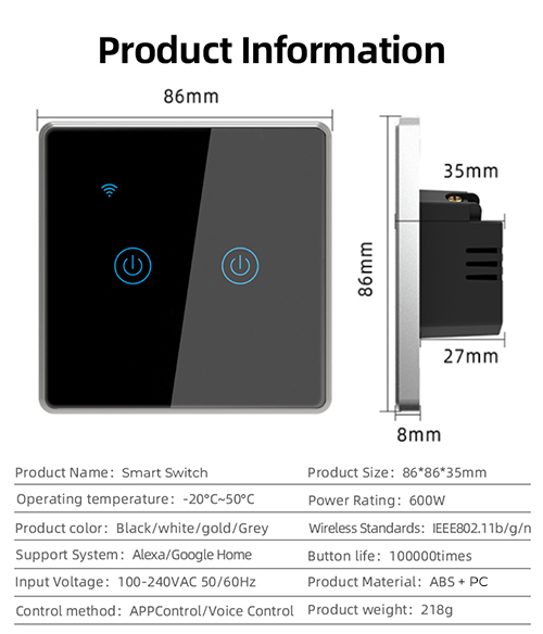 - Compatibility: Our smart switch is compatible with the Tuya smart home ecosystem.