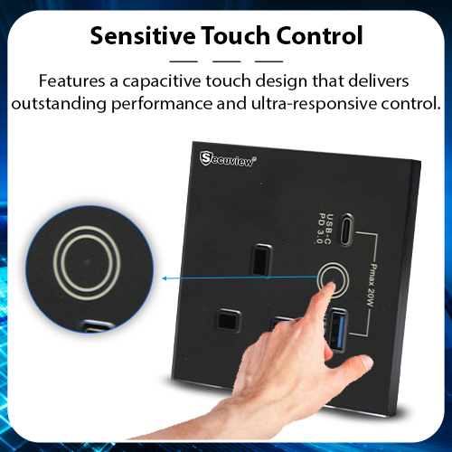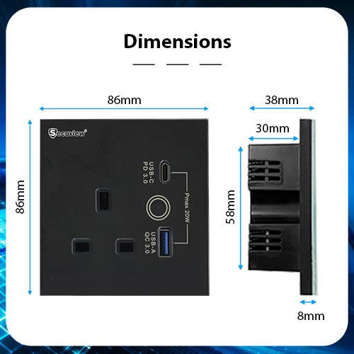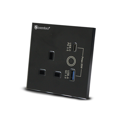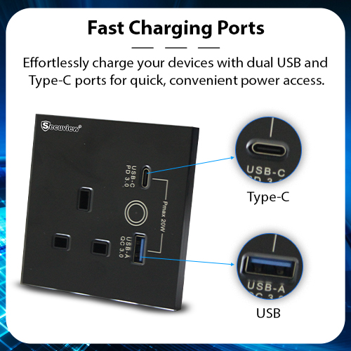 Secuview UK Smart Power Socket Sleek Design with USB-C& USB-A Fast charging Ports.
