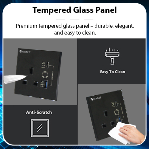 Tempered Glass Panel: Premium tempered glass panel – durable, elegant, and easy to clean.