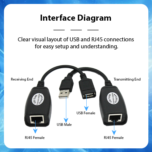 Interface Diagram: Clear visual layout of USB and RJ45 connections for easy setup and understanding.